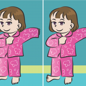 Spot the difference challenge in 19 seconds: Little girl wearing a soft pink pajamas with playful patterns