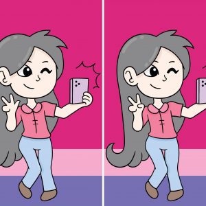 In the background of the young girl, smiling brightly as she strikes a playful pose while taking a selfie, you need to find the difference here within 30 seconds