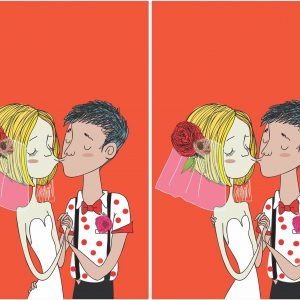 Quickly spot the differences in this romantic photo of a newlywed couple sharing a sweet kiss in 16 seconds