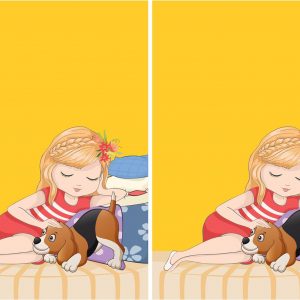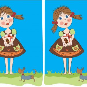 Find the difference in the photo of a young girl holding a gift, accompanied by her dog within 22 seconds and you will be the winner