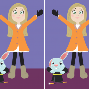 Only 3% of people can find the difference in this photo: A girl doing magic tricks with a rabbit