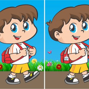 A new challenge has appeared, find the difference in 11 seconds: The boy happily carries his school backpack