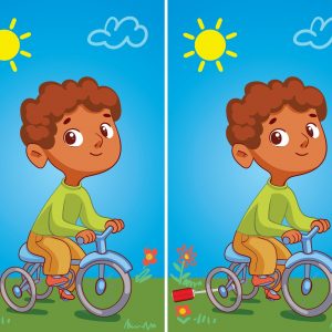 Quickly find the difference within 14 seconds in the image of a boy sitting on a bicycle