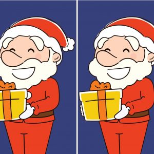 Welcome to the challenge of finding the differences in photos within 33 seconds, explore the photo of Santa Claus holding a gift with his signature smile