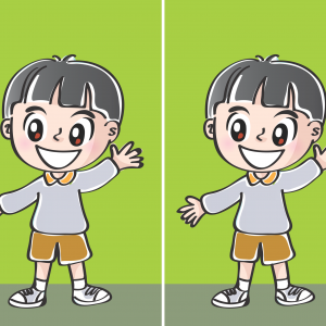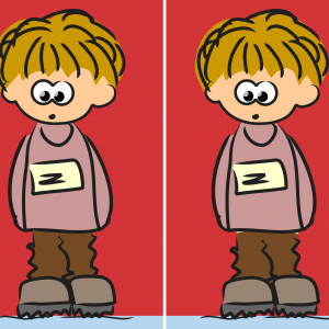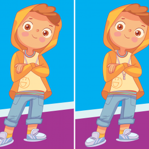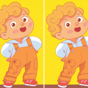Find the difference in 30 seconds: Boy puzzle with curious expression and strange outfit