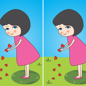 Only 5% of people can find the difference in this photo: Cute little girl with pink dress and heart-shaped toys