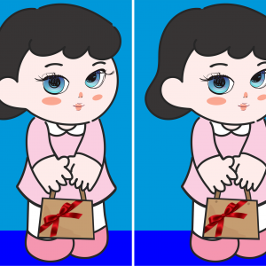 Look closely and find the difference in the photo of the little girl holding a gift bag in her hand for 31 seconds