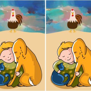 There is a hidden difference in the photo of the boy hugging the dog and wishing the cat affectionately, find it within 11 seconds.