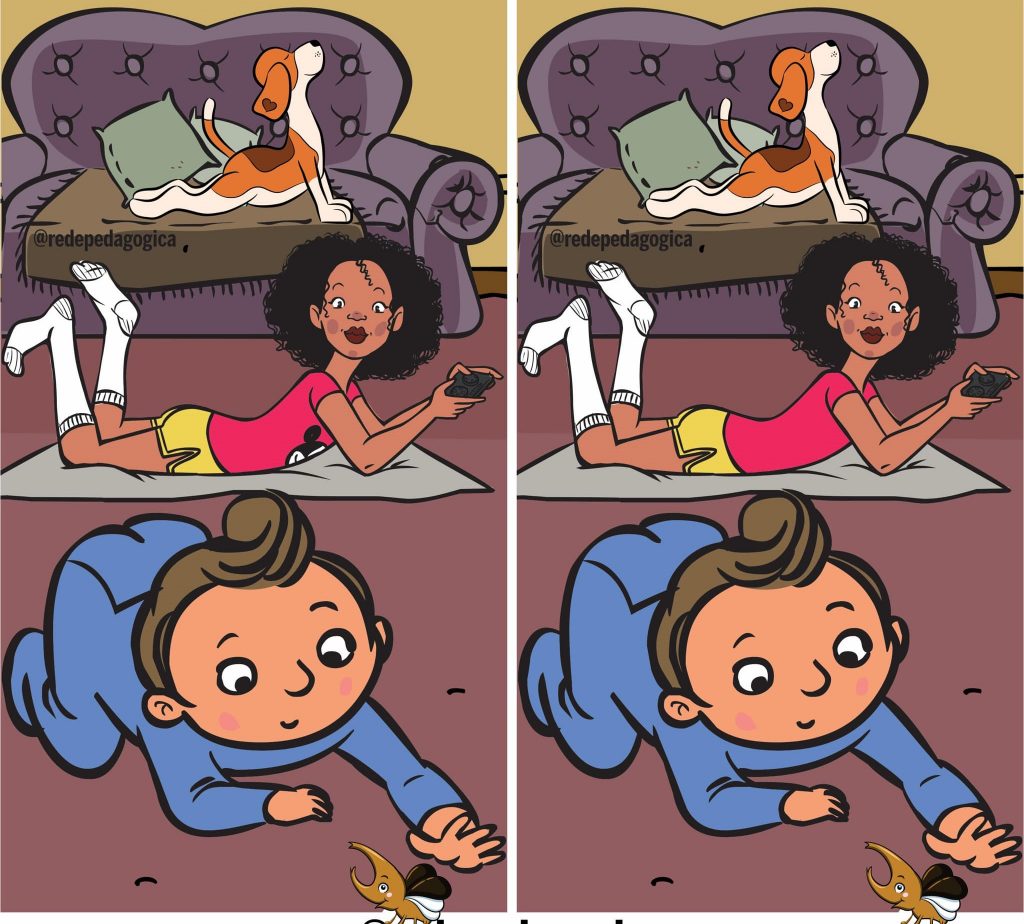 Are you looking for a way to challenge your observation skills while having fun? Spot-the-difference puzzles are an excellent exercise for sharpening your focus and attention to detail. In this particular challenge, we have an engaging scene of two kids, a dog, and a cozy living room. However, things aren’t as simple as they seem – there are subtle differences hidden between the two images, and it’s up to you to find them!