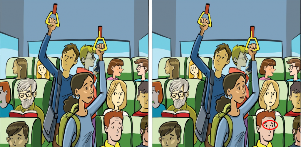 Special challenge only 3% of people find the difference in the photo: People are crowded on the bus