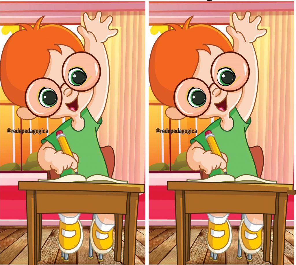 Are you ready for a fun challenge? Test your attention to detail and sharpen your observation skills with this engaging “spot the difference” puzzle! The scene features a cheerful young boy sitting at his desk in a classroom, waving his hand in excitement. But things aren’t as simple as they seem! As you carefully examine the image, you’ll notice that there are subtle differences between the two versions of this scene. Your task is to find them all!