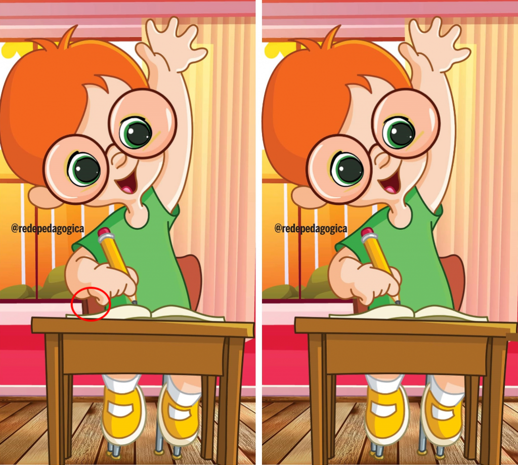 Behind the boy, there’s a large window that lets in the natural light. The background features elements that add to the classroom’s cheerful environment, like shelves and educational posters. Could one of the posters have changed? Perhaps the window’s view has been altered in some way. Maybe there’s a shift in the color of the curtains or even the shape of the window. These changes in the background might be harder to spot, but they often contain the most challenging differences.